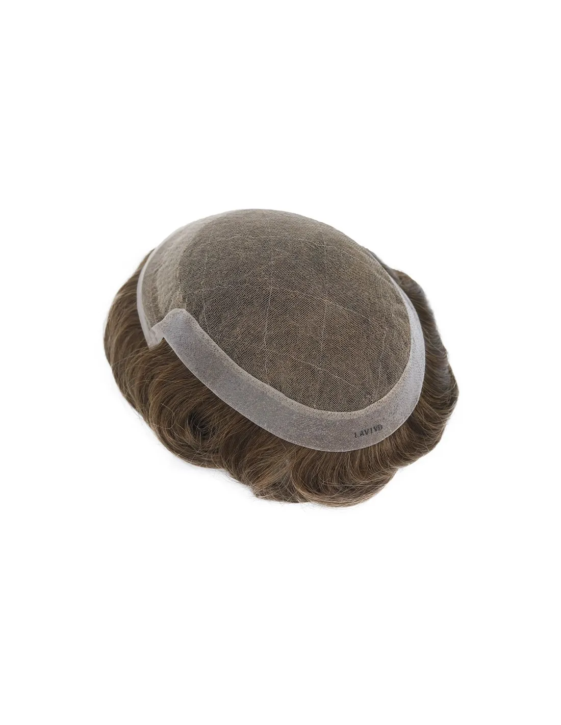 Lace Middle + 1'' Skin on sides and back |7''X9'' Indian Human Hair Golden Chestnut |30mm Slight Wave |95% Medium Light | 6''
