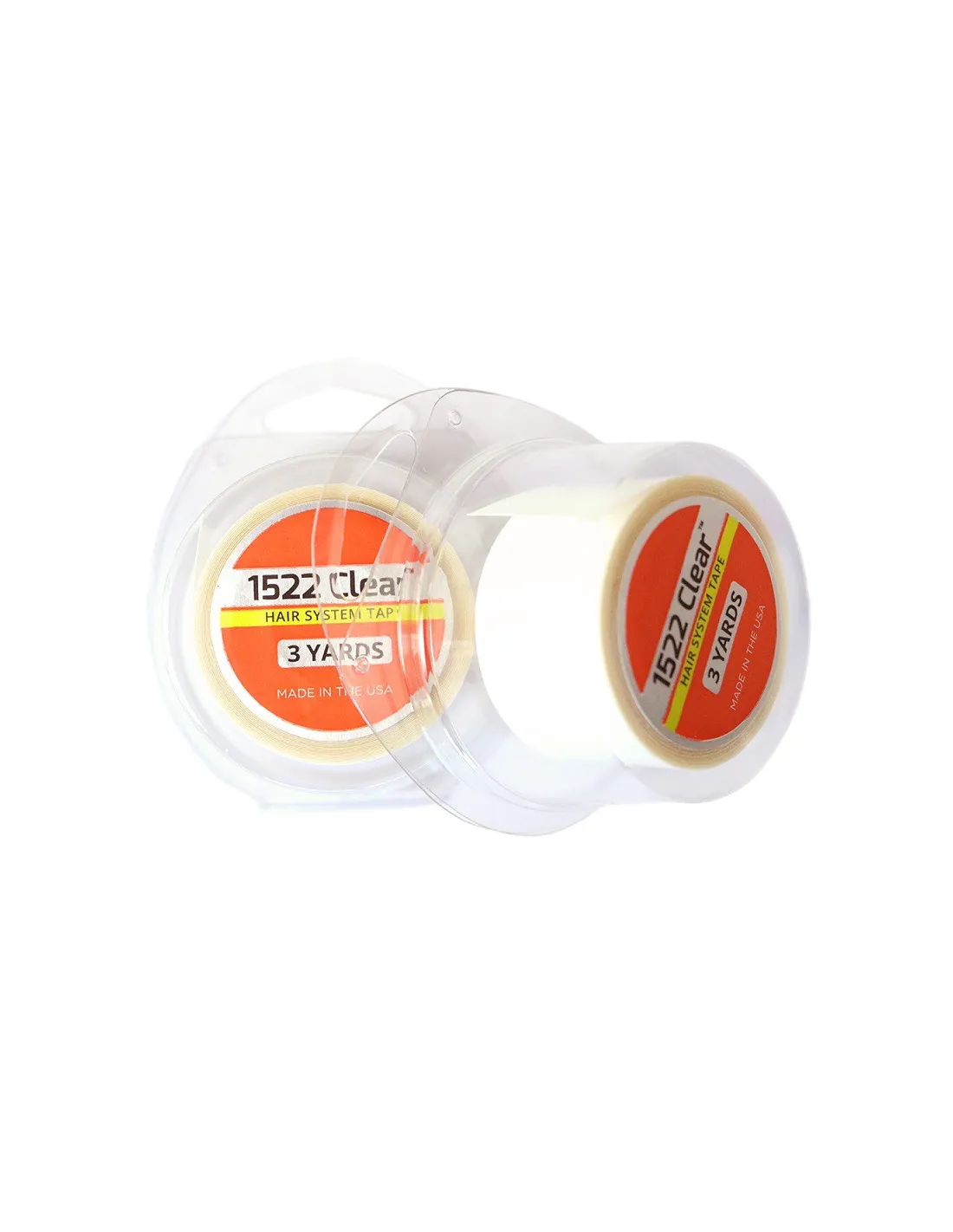1522 Clear ist das beliebteste Klebeband für den täglichen Gebrauch von Haarsystemen. Es ist bekannt dafür, sanft zur Haut zu sein. Es handelt sich um ein inaktives Klebeband, sodass keine Hautreaktionen auftreten können und es eine ausgezeichnete hypoallergene Option darstellt. Dieses Klebeband hinterlässt nur sehr wenig Rückstände und ist daher für den täglichen Gebrauch beliebt. Das Trägermaterial und die Rückseite sind weiß, das eigentliche Klebeband ist jedoch durchsichtig. Es eignet sich nicht ideal für Netz-Einheiten, da es einen gewissen Glanz aufweisen kann.